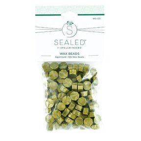 Aged Gold Wax Beads contains 100 wax beads in a gunmetal copper-ish color. The entire bag can create approximately 25 seals. Use the WS-001 Wax Seal Kit to complete your wax seal ensemble. For other choices of wax bead colors, look to SpellbindersÕ offerings in this collection.