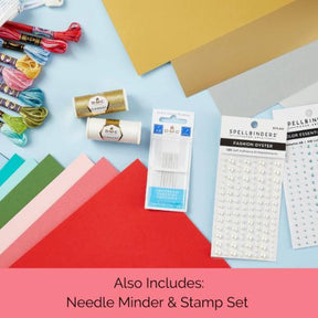 This kit includes everything you need to get stitchy along with fan-favorite influencers and designers during the Spellbinders Stitch-Along in September. Includes floss, needles, a needle minder, a stamp set, gems and an assortment of cardstock in an easy to store pouch.