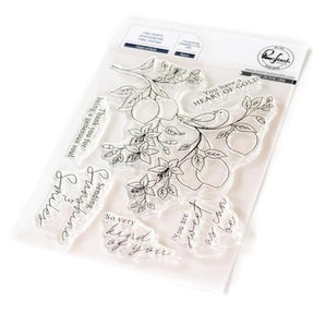 4 x 6 photopolymer clear stamp set designed by Isha Gupta. Made to coordinate with the Heart of Gold die set & Heart of Gold layering stencil set. Available for purchase separately. This versatile stamp set offers branches of beautiful lemons with a sweet little perched bird. This focal image is easy to line up with the coordinating layering stencils, then cut out with the matching die. Stamp the lemon image, then easily ink blend colors to it with the coordinating stencils in all your favorite shades of ink. You can also color the outline stamped image in your favorite mediums, including watercolor, markers and colored pencils. By offering different options within each design, you get the utmost of versatility when using our products!