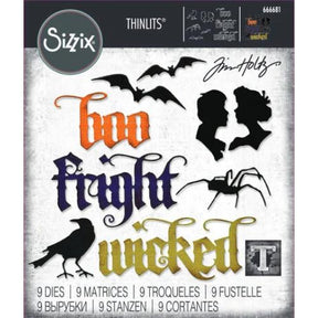 Embark on a journey into the shadows of creativity with Vault Gothic Portraits by Tim Holtz®! Transform your Halloween crafts into chilling masterpieces with this hauntingly beautiful 9 pack Thinlits die set. Craft sinister silhouettes, eerie bats, birds and spiders, along with haunting phrases that will transport you to a world of Gothic elegance. Whether you're adorning invitations, decorating haunted house scenes, or creating chilling greeting cards, Vault Gothic Portraits adds a touch of dark sophistication to every project. This die set is compatible with the Sizzix Sidekick machine.