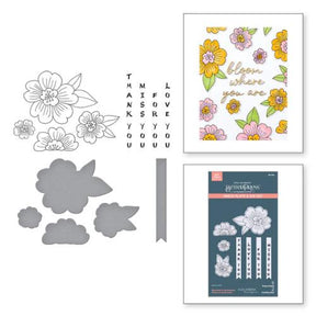 Blossoms & Sentiments BetterPress Plate & Die Set is part of the Spring in Kyoto Collection by Alex Syberia Designs. The five plates impress a total of four cherry blossoms and four vertical sentiment banners. Each flower has its coordinating die and the sentiment banner has one to cut all. The sentiments include Thank You, Miss You, For You and Love You. Ink the plates with the BetterPress Ink to be pressed against the BetterPress Cotton Card Panel and Sheets for a crisp letterpress design.