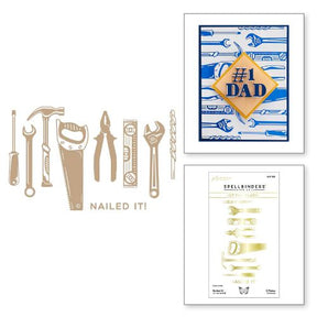 Toolbox Essentials Collection is a first collaboration between Nancy McCabe and Spellbinders. It is a wonderful grouping of tool designs to accent any DIY-themed creations. It includes craft thin metal cutting dies, hot foil plates for extra shine and clear stamps to add that perfect sentiment.