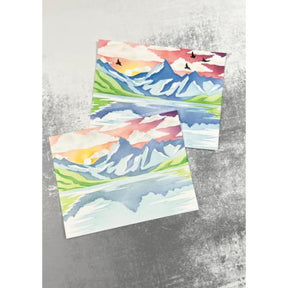 Watch your blank cardstock panel come to life while ink blending using our Glacierscape Layering Stencils. This landscape stencil collection contains four 6.2 x 4.7 inch stencils and one additional cloud accent stencil (6.2in x 1.8in)