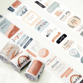 A washi tape lover's must-have. Introducing our newest Motivational Washi Tape Sticker Set, the perfect addition to any crafting or journaling project! This set features a variety of inspiring quotes and text designs.