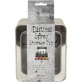 Organize and transport Distress Sprays (sold separately) easily in this convenient tin. This package contains one 5x4.75x5.75 inch storage tin that holds 12 1.9oz spray bottles. Imported.