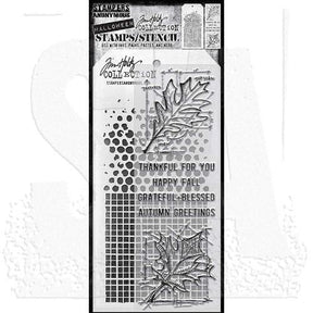 Tim Holtz Mixed-Media Stamps & Stencil Set THMM151: Fall Blueprints, Linen And Bubble