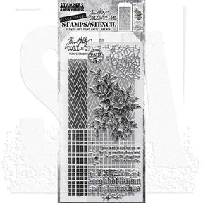Tim Holtz Mixed-Media Stamps & Stencil Set: Lady Rose, Woven and Linen THMM119
