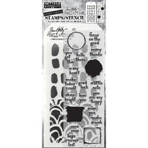 Tim Holtz Mixed-Media Stamps & Stencil Set: Note Quotes THMM184