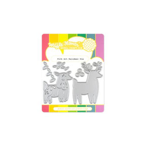 Create an adorable reindeer in a folk art syle with this Folk Art Reindeer Die! Use the base layer as a silhouette, or stack the detail layer on top for a more whimsical look. Multiple leaves for each antler, and circles for the blush were included so you can create multiples of them at once.